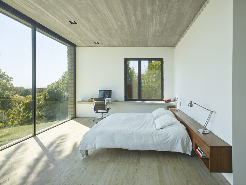 En planta baja se sitúa la zona pública abriéndose las vistas tanto hacia el rio como al patio de entrada generando una vista cruzada del terreno.