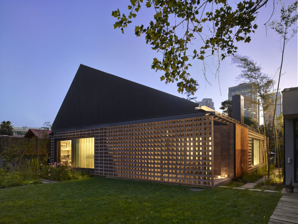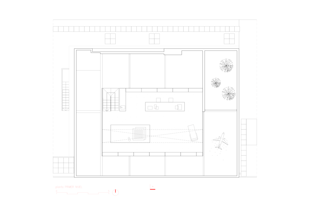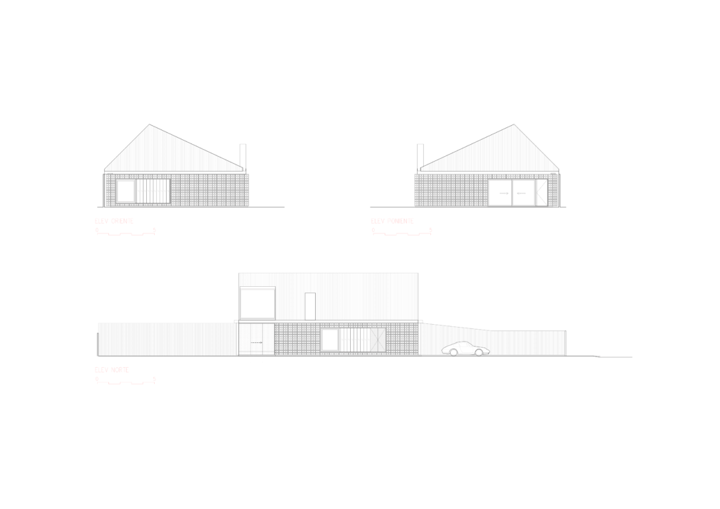 We took advantage of the land surrounding this house to expand the garden of the neighboring house, have a vegetable garden, and a comfortable space for parking. To improve the coexistence of these two functions, the Casa Estudio has few openings to the outside on ground floor, to maintain the privacy of the home. The light is brought in mainly by skylight which runs along the whole upper floor from east to west.