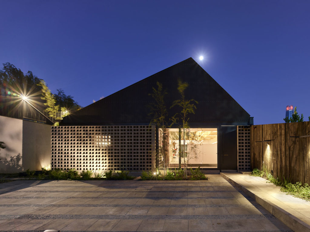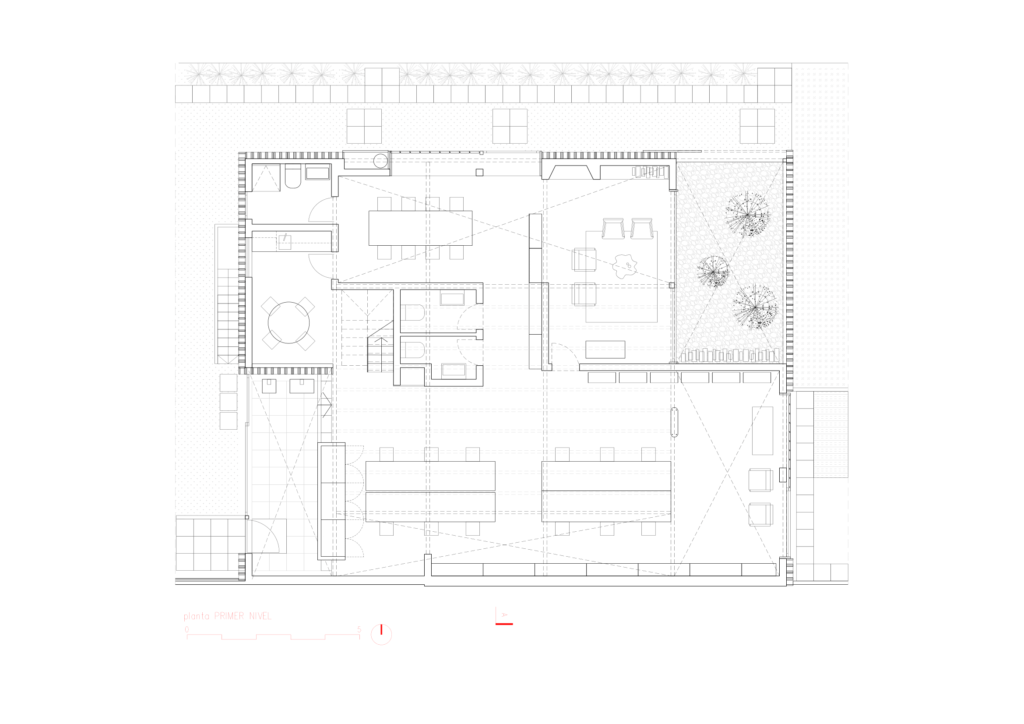 The design consisted of taking advantage of some of the walls of the preexistent house, demolishing the rest, removing the roof, and installing a metal structure that connected everything, with a gable roof that would allow us to have one roof below which we could work in different rooms.