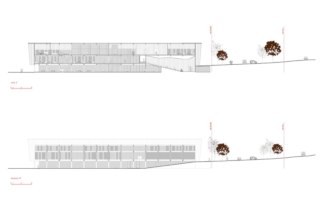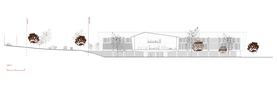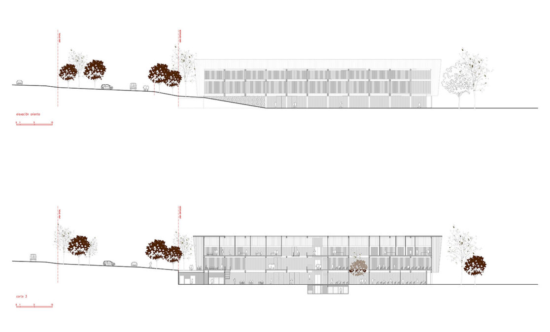 The general approach is based on recognizing and making the statements of the Master Plan their own, in the sense of developing ordered volumes perpendicular to the route and the slope, but
