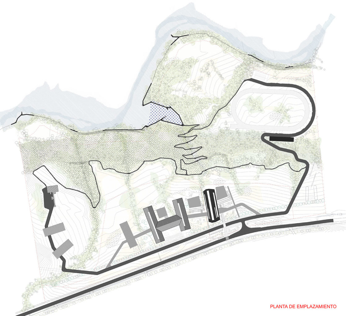 The Master Plan suggests a series of isolated volumes, perpendicular to the elevation, with east-west orientations, which are distributed along the vehicular road on the upper elevation and a pedestrian circulation that links the different buildings at its midpoint, as a sort of comb.