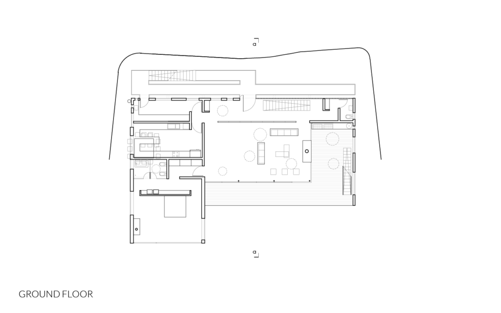 El lugar posee una magnífica vista al Pacífico, a la vez que una fuerte pendiente hacia el mar, con magníficas vistas que debían ser explotadas. Es por esto que el programa se desarrolla en tres niveles, además de una habitación para invitados bajo la piscina, en que la totalidad de las habitaciones miran al mar.