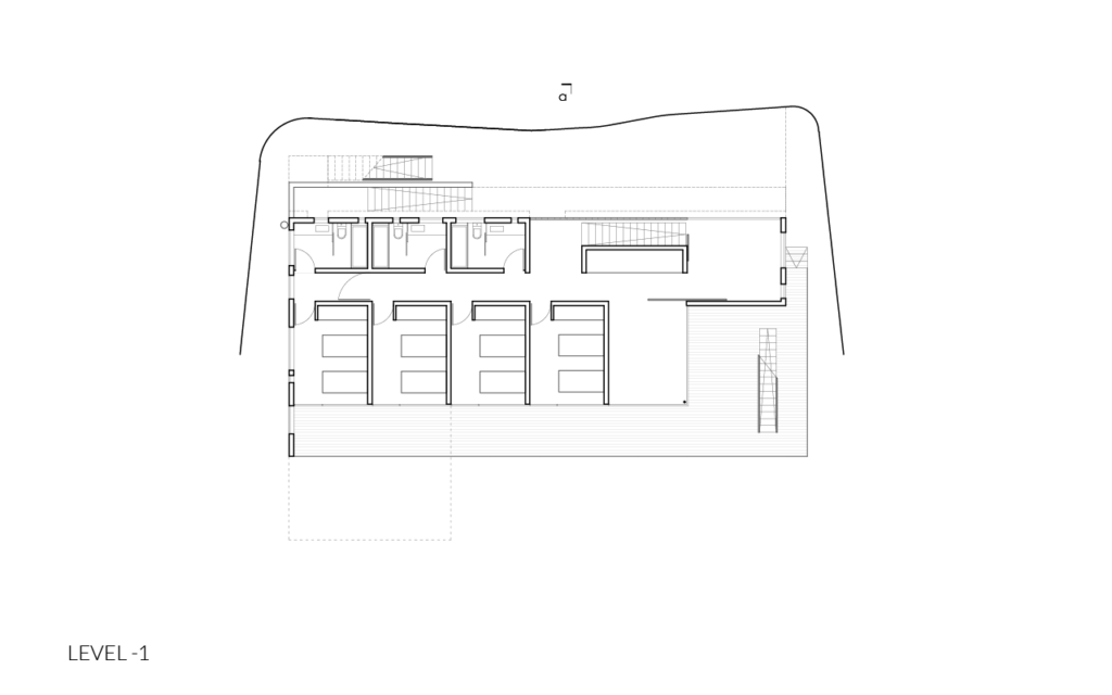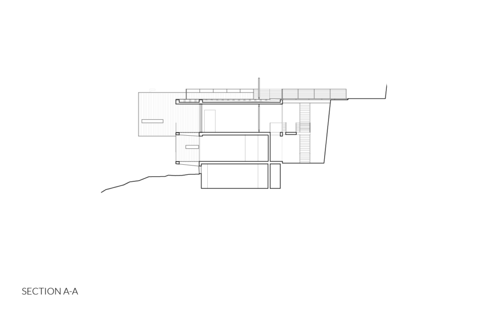 La casa está planteada como un volumen monolítico de hormigón visto, que alberga la sala de juego y el cuarto de TV en el zócalo, las habitaciones y estares de jóvenes en la planta baja, y el estar principal, cocina y habitación principal en el nivel superior.