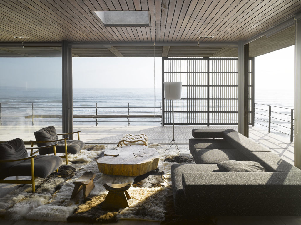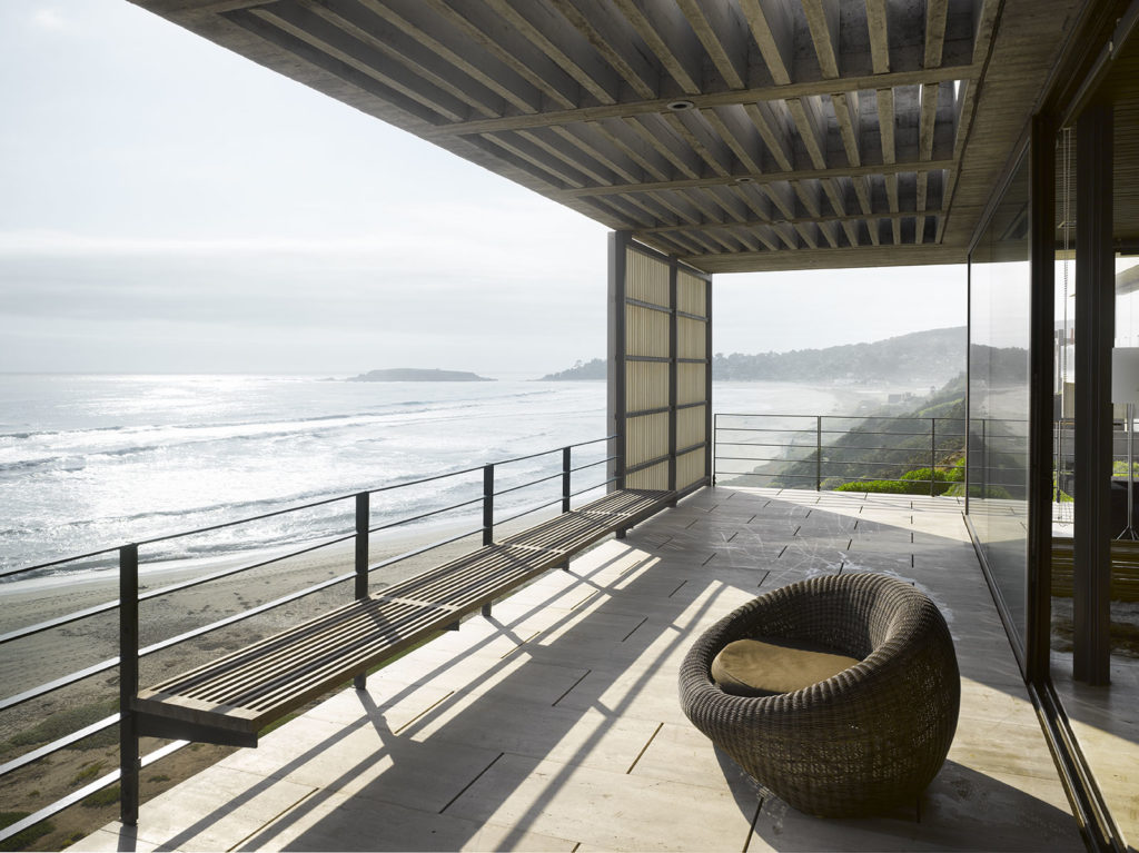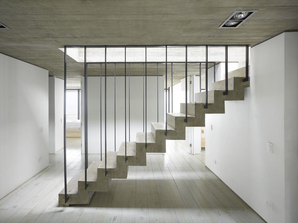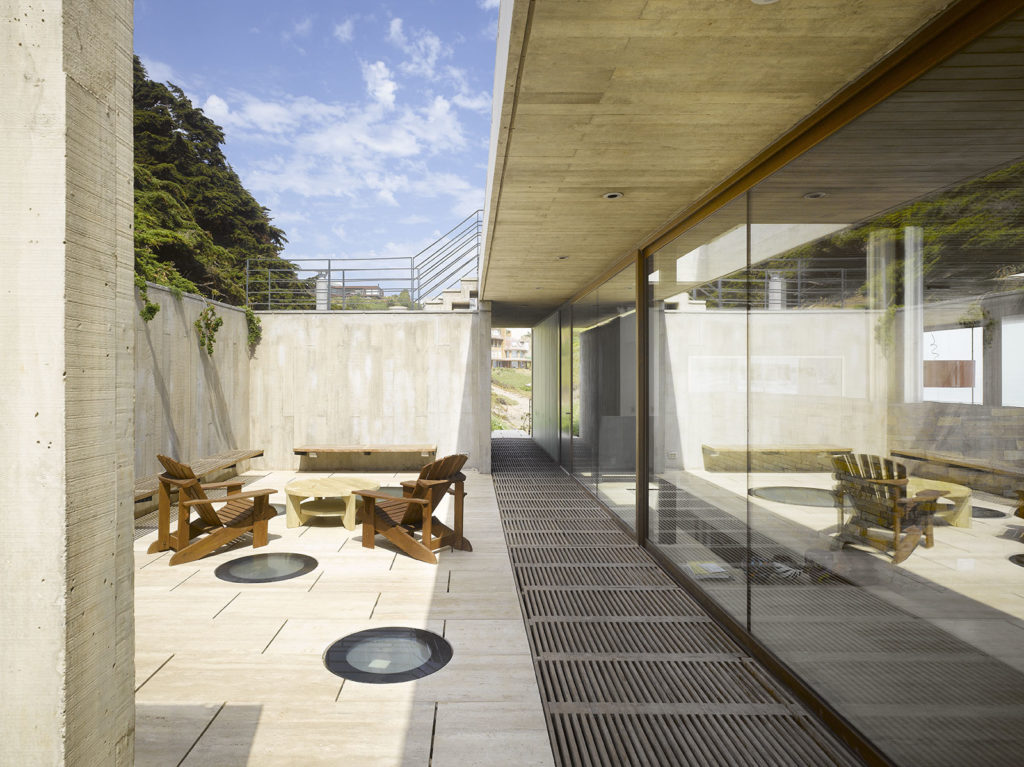 La materialidad está restringida a hormigón visto, piedra y madera.