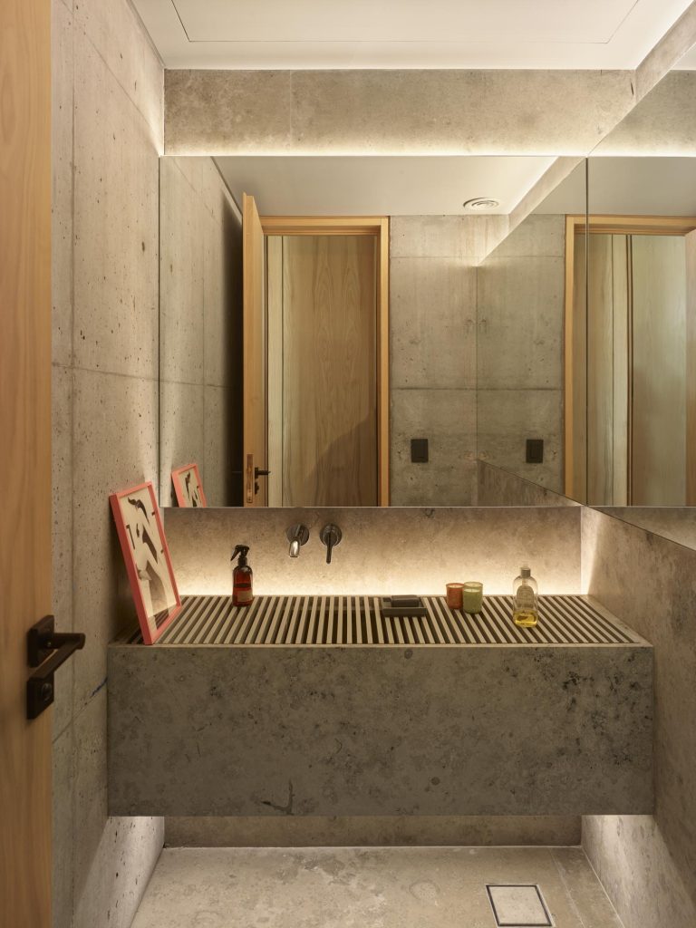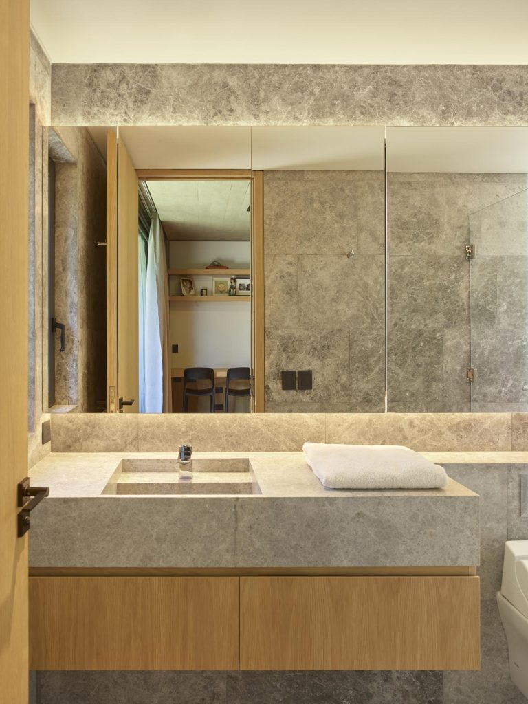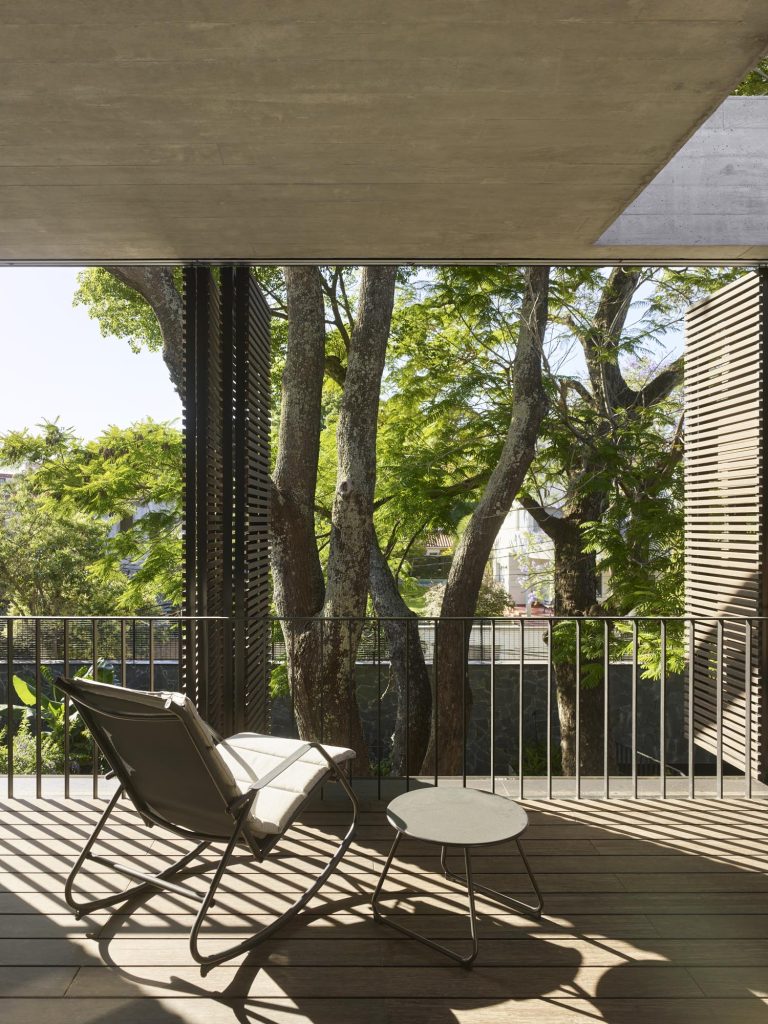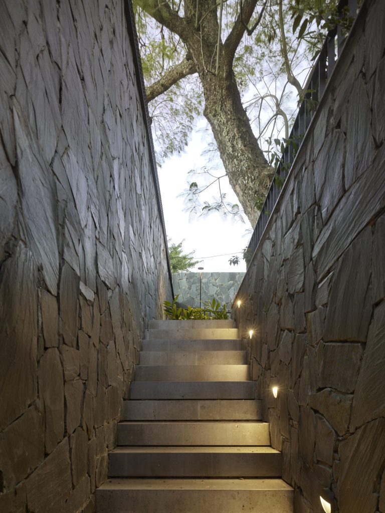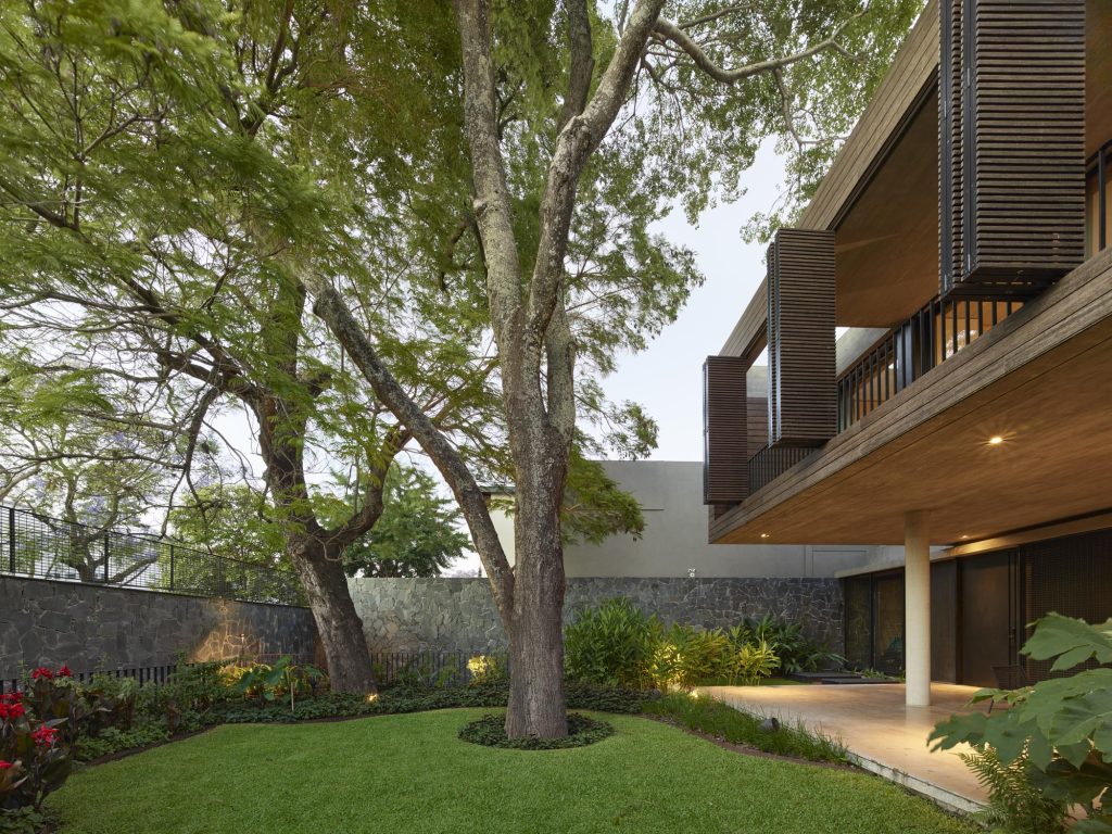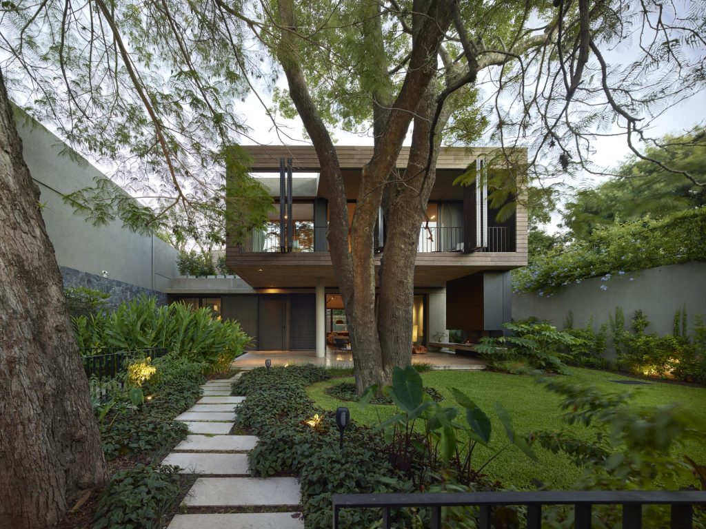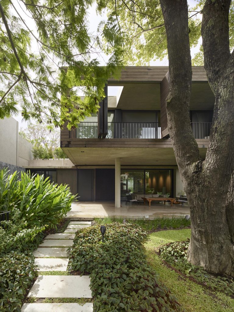 En el primer piso ubicamos las habitaciones y en el subsuelo la cochera. El nombre de la casa corresponde a un lapacho rosa muy importante situado en el jardín del frente a la calle, el cual determinó el modo de acceso, la ubicación del cuarto principal y el acceso a la cochera.