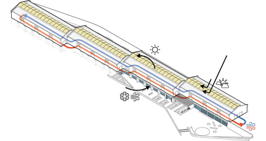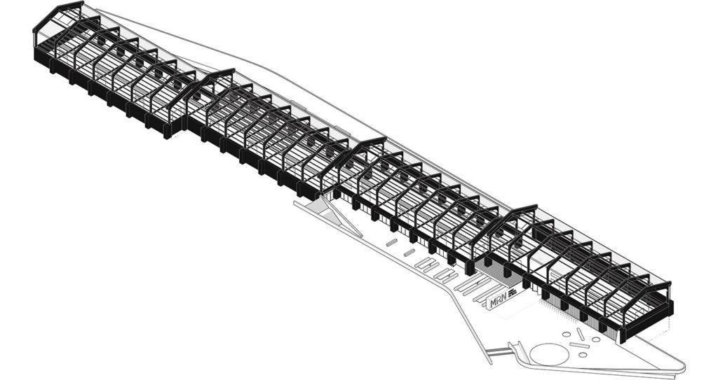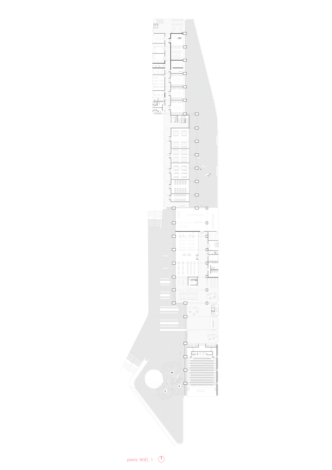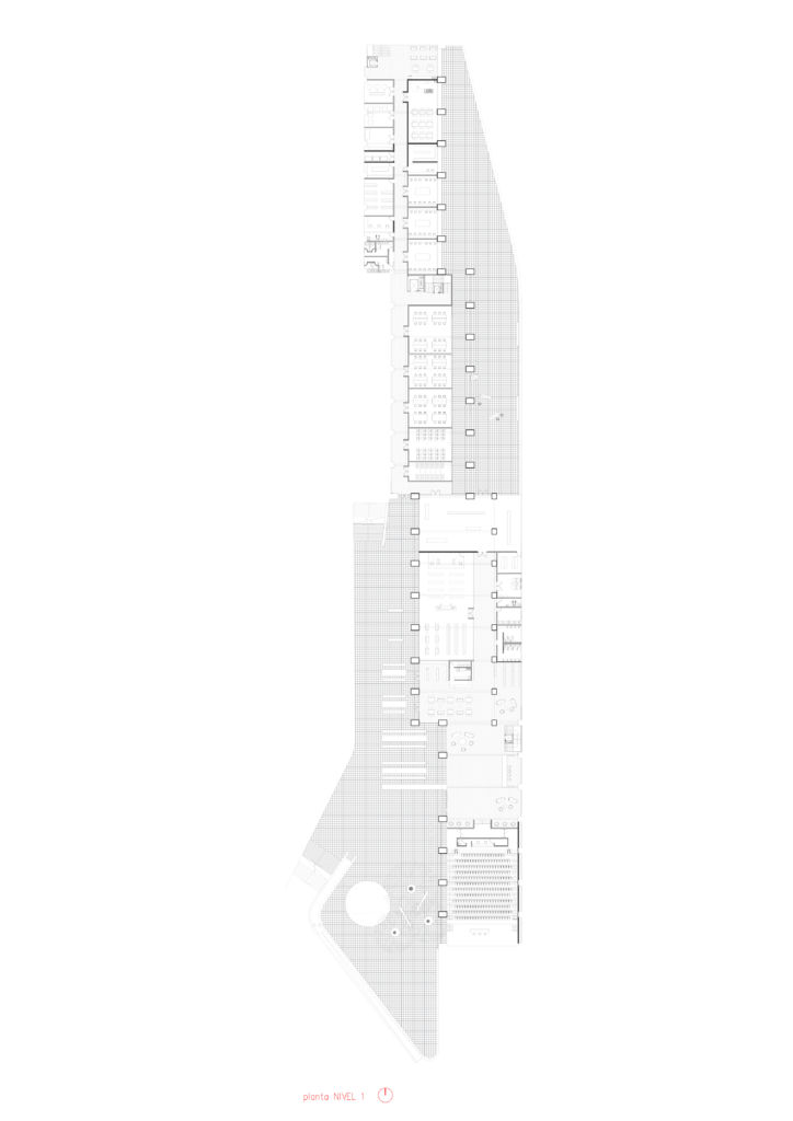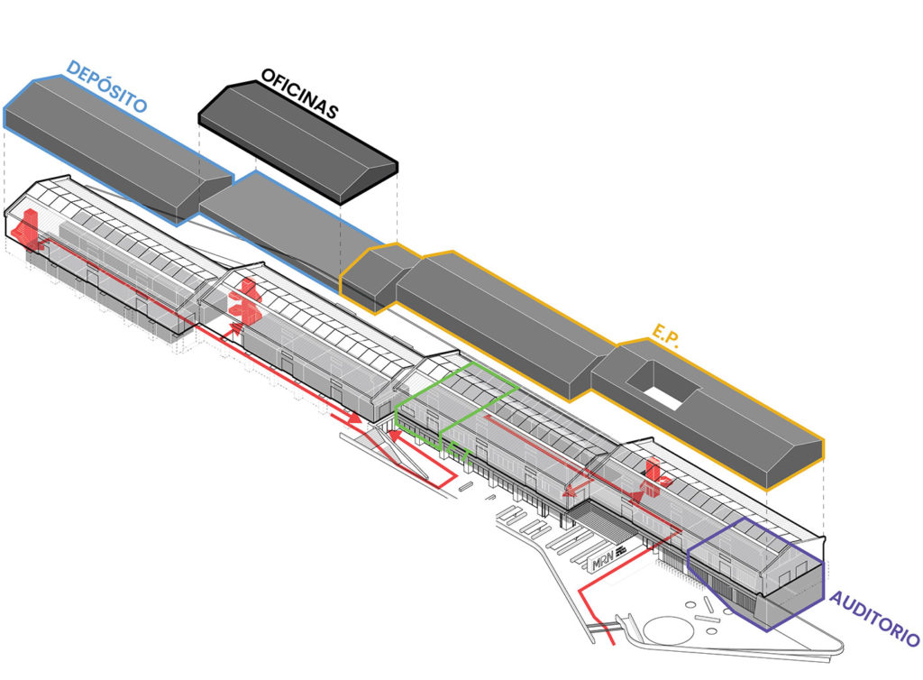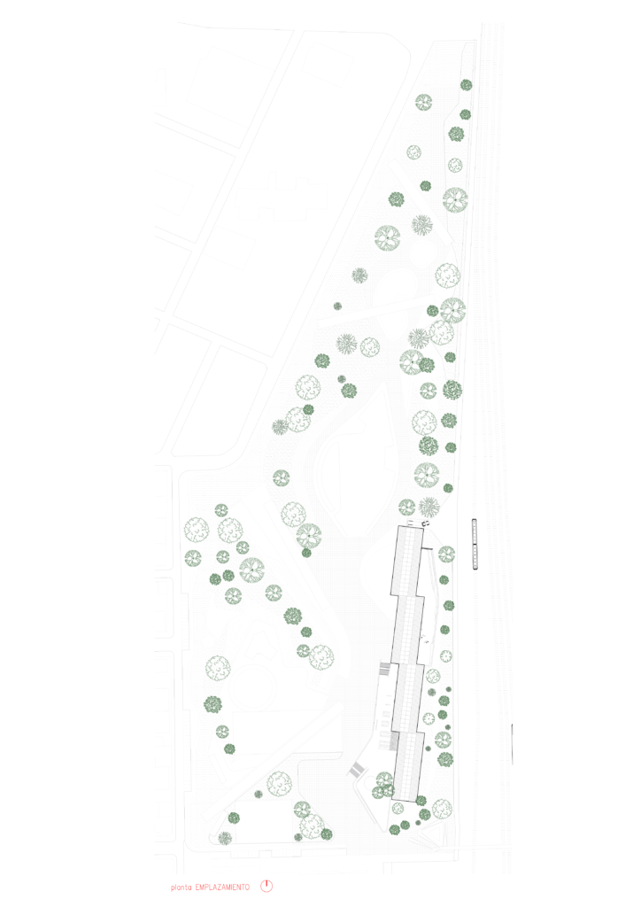 El edificio considera las variables urbanas y escalares del contexto, el tamaño del edificio, las conexiones de este con el parque y la estación, asumiéndolas como preexistencias.