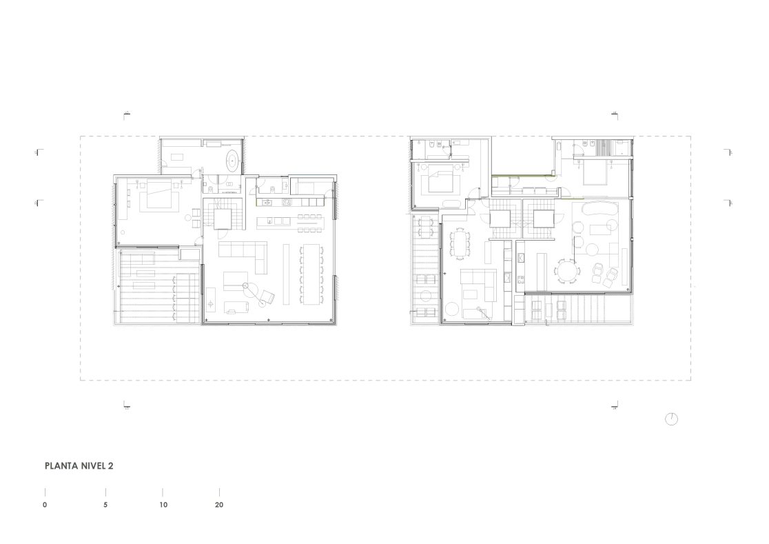 Each house has three floors and is distributed similarly, with guest rooms and secondary bedrooms in the basement and ground floor, freeing up the first floor for the master bedroom and common spaces. All three also have a roof garden, which houses the barbecue grill and pool, with privileged views of the surroundings.