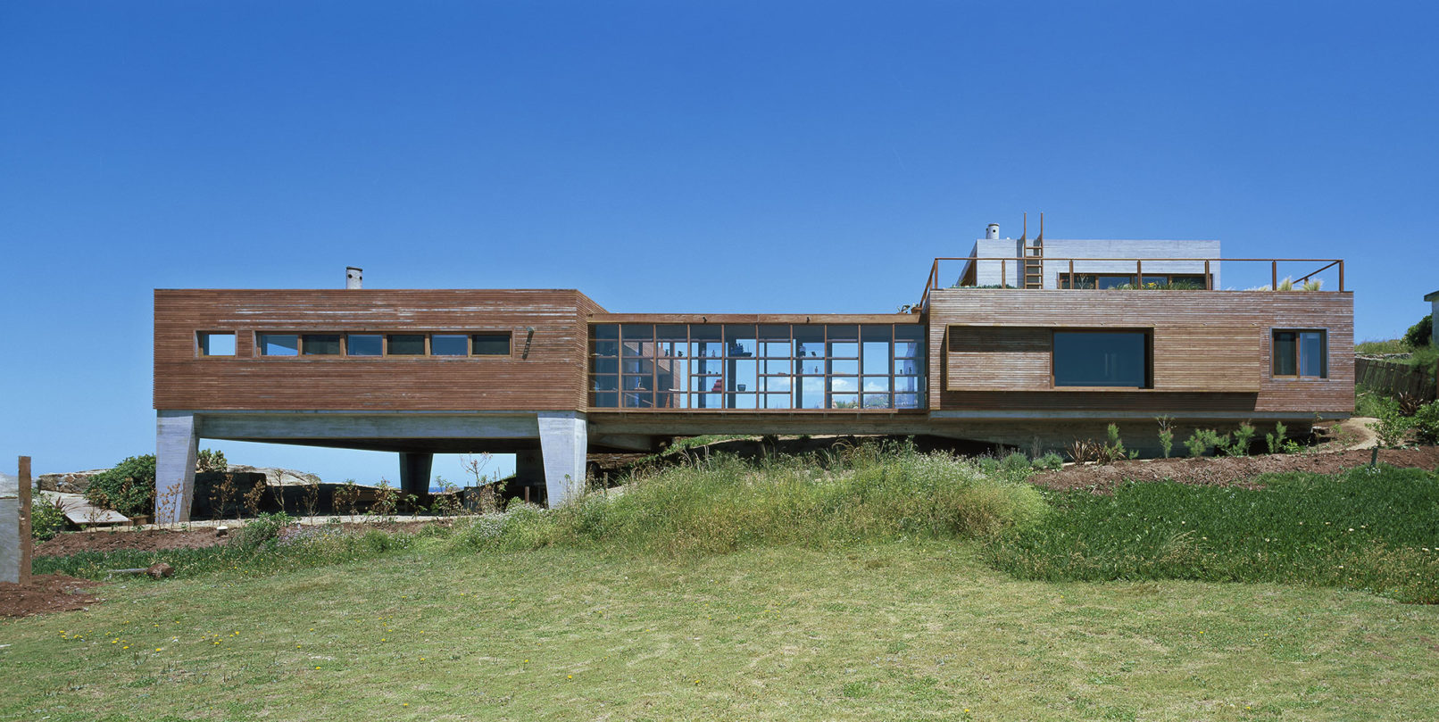 La Roca house is a refuge camp located in Jose Ignacio Point in a fishing village 80 km north of Punta del Este in the Atlantic. The site presents a double slope along its length and width, terminating in rocks and t ruins of the foundation of a pre-existing building which forms a natural garden of succulents nowadays.