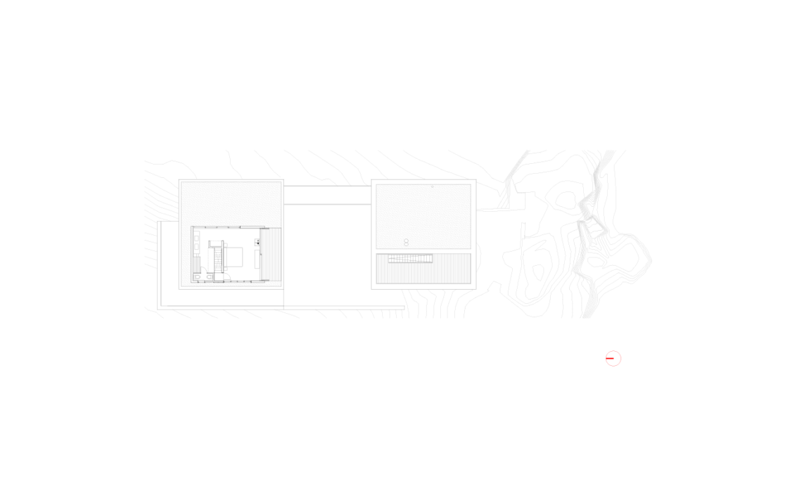 La Roca House is defined through a sequence of spaces, almost square in plan, in which run entering from the most public to the most private, crossing terraces, patios, exterior, intermediate and interior spaces and arriving finally to the master bedroom. In winter time the gallery space captures heat, but in the summer, the master bedroom acts as a chimney for the convection of the rising warm air creating ventilation that eliminates the need for air conditioning.