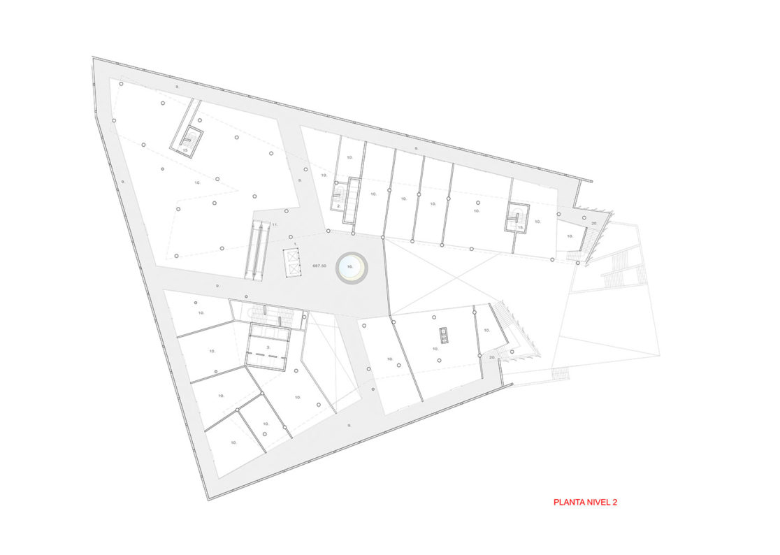 Skyline Cut: The different volumes of this body maintain in their height an independence that leads to the perception of a diverse skyline, which also contributes to the break of this volume.