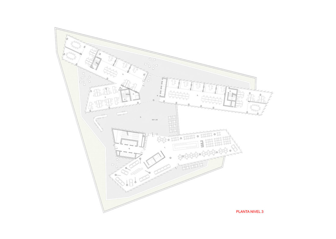 A percentage of the windows in both towers are operable, so as to take advantage of the large number of months and hours to obtain a comfortable temperature, using natural ventilation. The office building’s bay is slender so that 100% of the office spaces will have a direct view of the exterior. The toilets will be low consumption, incorporating a gray water treatment plant, which will be used to irrigate the gardens. The species chosen will be native. Thermo-solar panels will be incorporated into the non-trafficable roofs of the towers. The colors of these elements are differentiated and in intermediate tones in order to avoid undesired overheating. The roofs of the buildings are generally walkable spaces with the incorporation of terraces, public spaces and gardens planted with low water consumption species, which improves thermal insulation and prevents overheating.