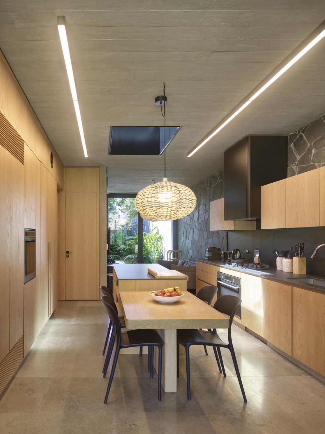 On the ground floor, we located the entire public program along a sequence of successive spaces, flanked by two pergolas, overlooking the front and rear gardens, respectively. The common space is continuous and can be traversed both physically and visually along the entire length of the lot.
