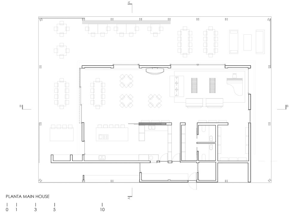 Se trata de una especie de Club House, donde se hacen comidas, encuentros, pequeños conciertos, y todo tipo de encuentros sociales. A esto lo acompaña una gran piscina y un pequeño spa para masajes y relajación, además del espacio de yoga , construido hace ya unos años.