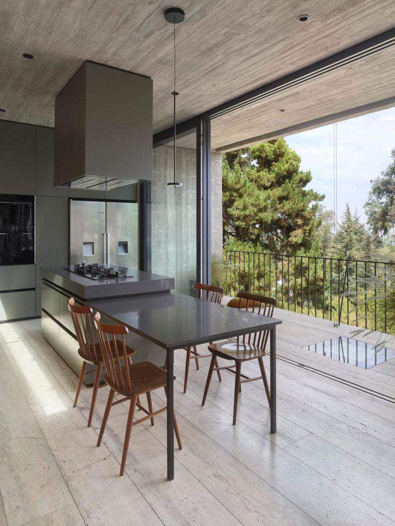 The windows in the living-dining area are completely displaced, leaving a spatial continuity between the interior and the exterior that allows the house to be inhabited as a continuous terrace, where the boundary between the inside and the outside becomes blurred.