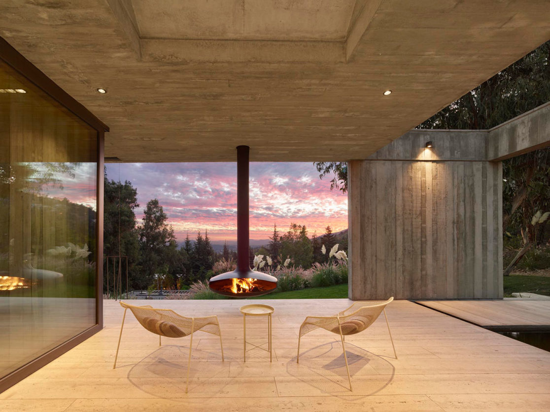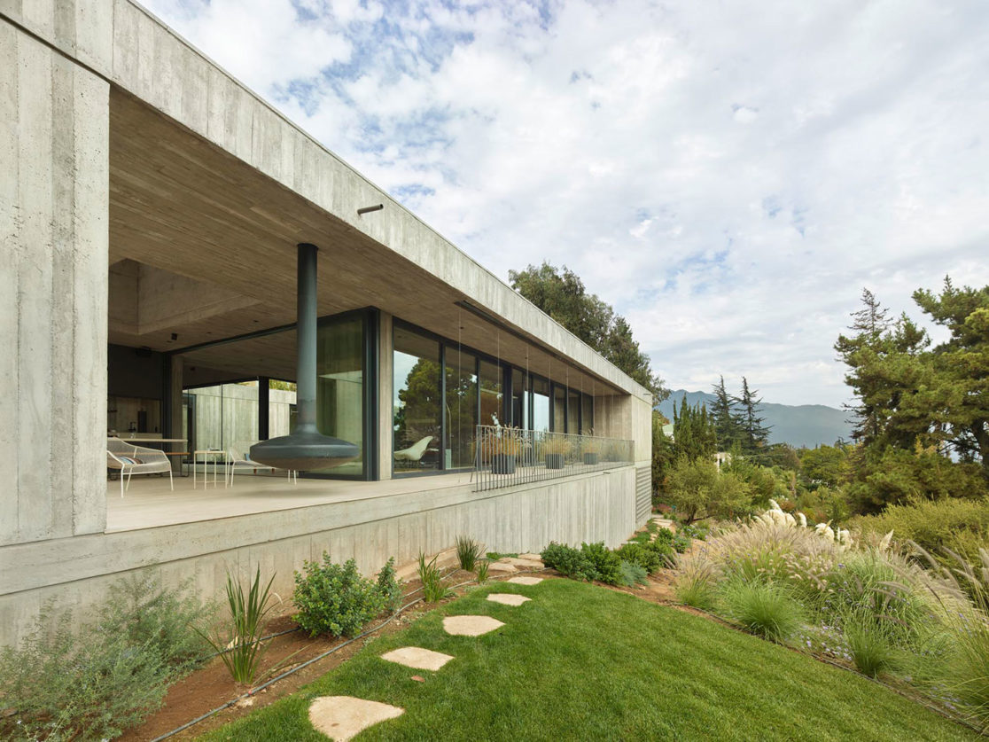 Casa Patio is part of a group of three houses located on the slopes of Cerro Manquehue, in the Lo Curro neighborhood.