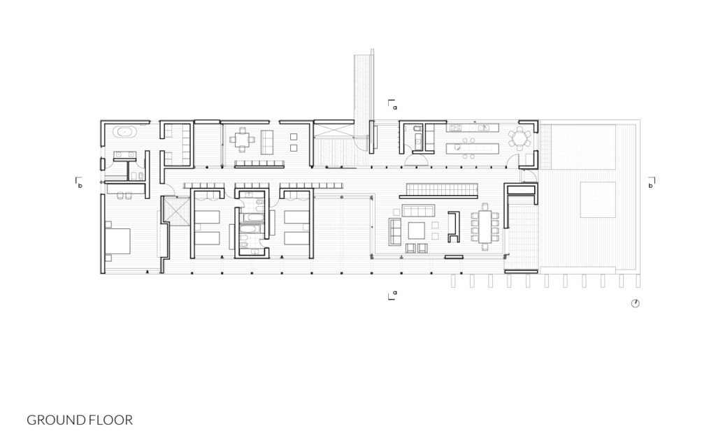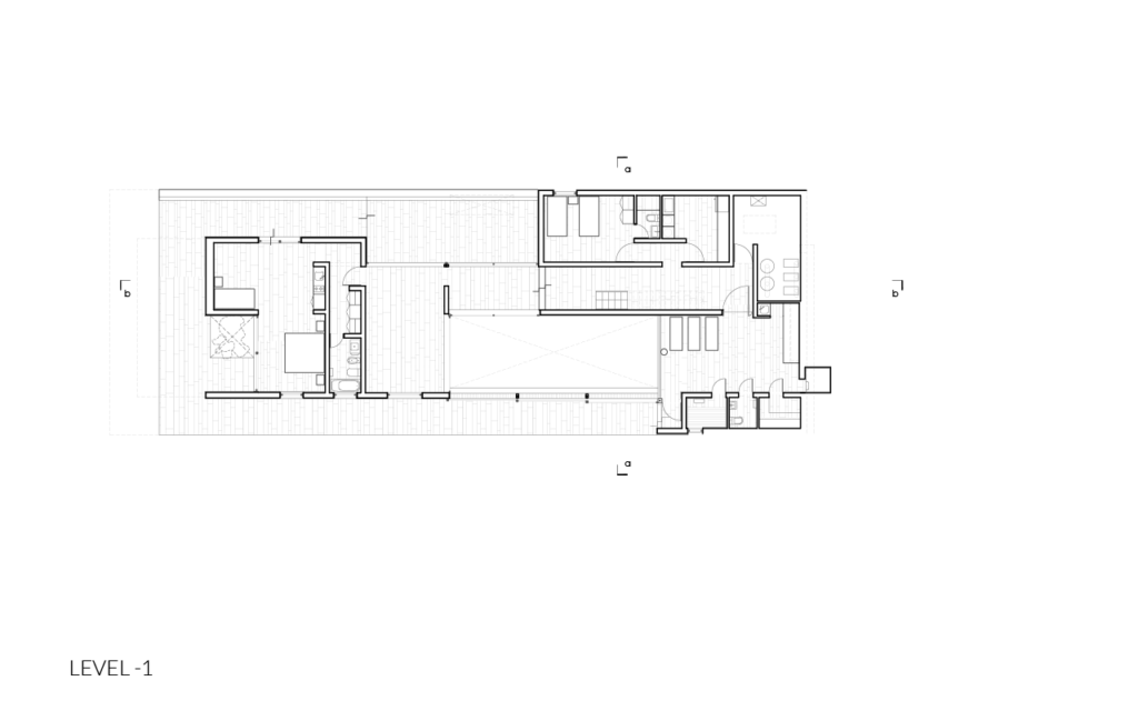 The program is divided in two levels: ground level, where public and family spaces are located, guest and service areas are located in the lower level.
