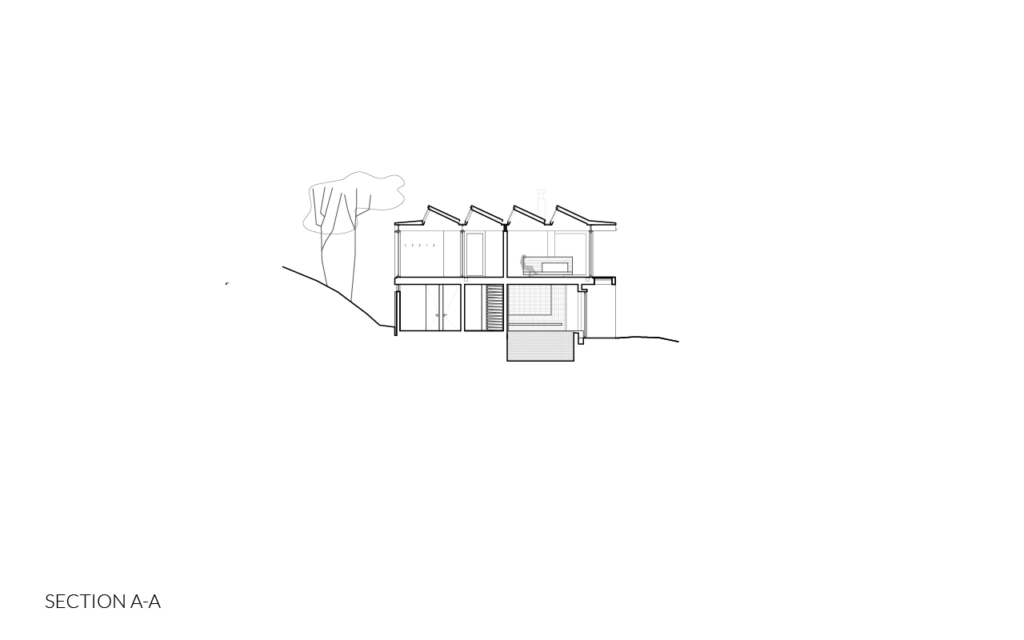 Local construction regulations impose the use of pitched roofs, along with the clients desire to obtain natural light in the interiors, determining utilization of a cooper roof with a window facing north. This glass surfaces could be covered or not, depending on the space that lies beneath.