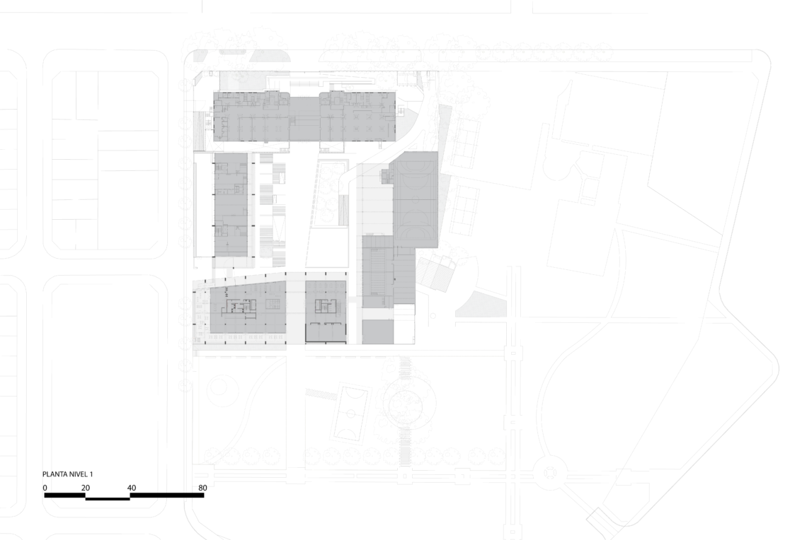 • Una plaza pública lindante con el predio, pero sin conexión con el Campus.