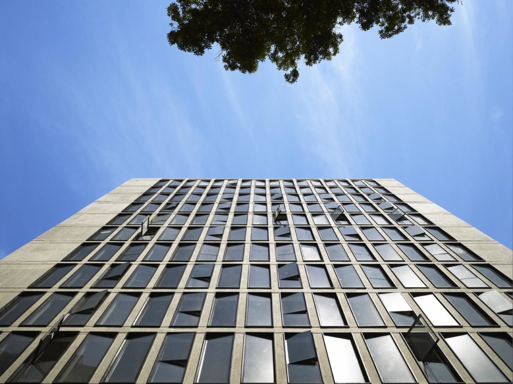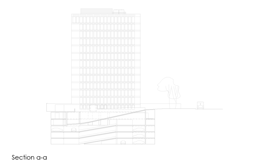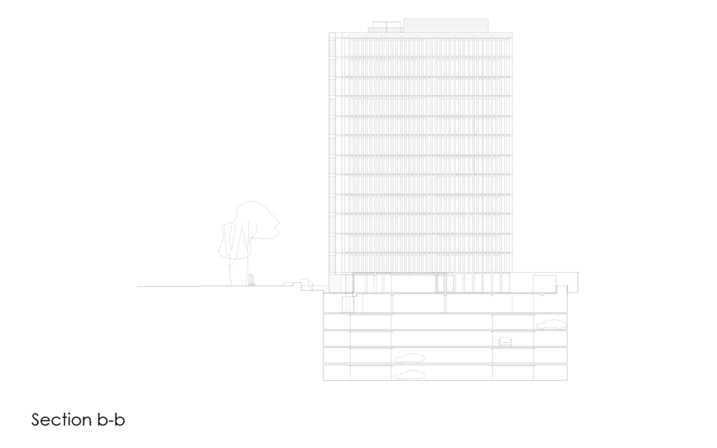 The building, designed together with Pablo Riquelme and Renzo Alvano (former members of the studio) was originally intended as a hotel, until the investors decided offices would be a better option.