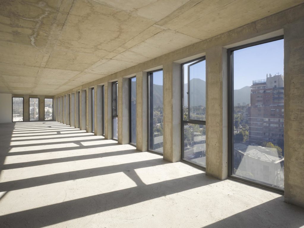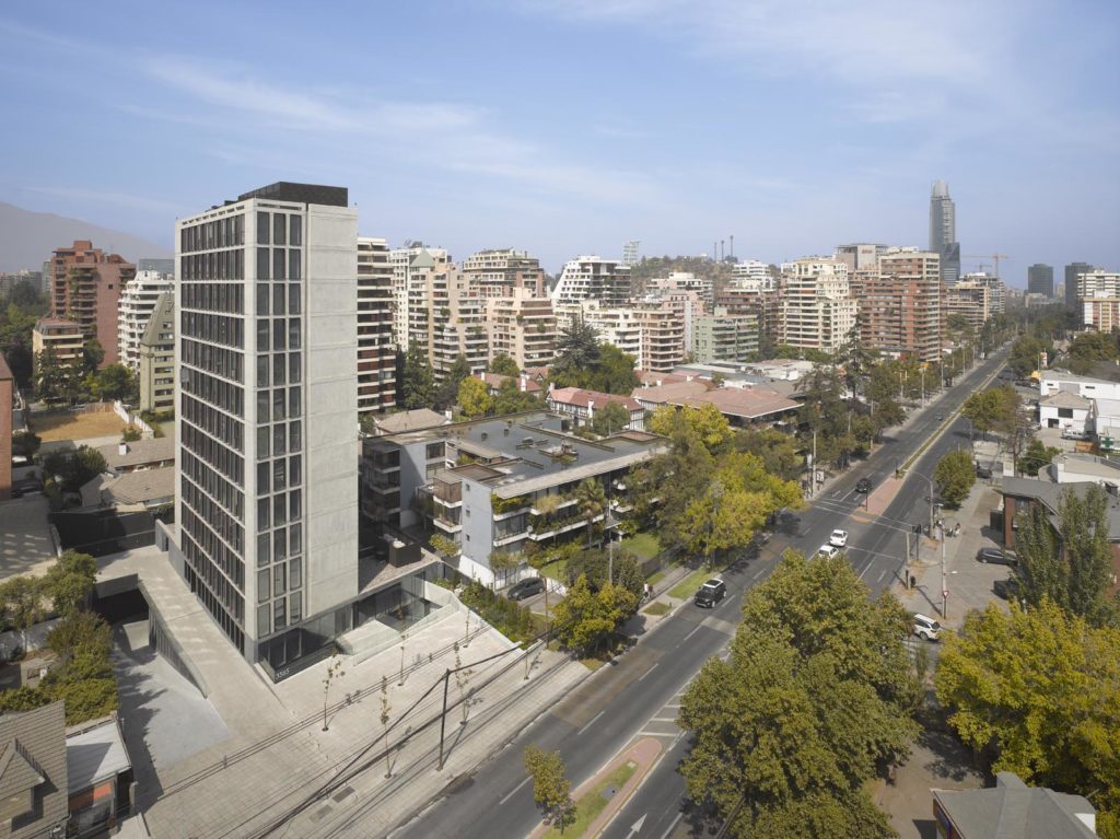 The Vitacura building is the first commission for an office building that, despite its lack of stature, attains a certain monumentality with its proportions.